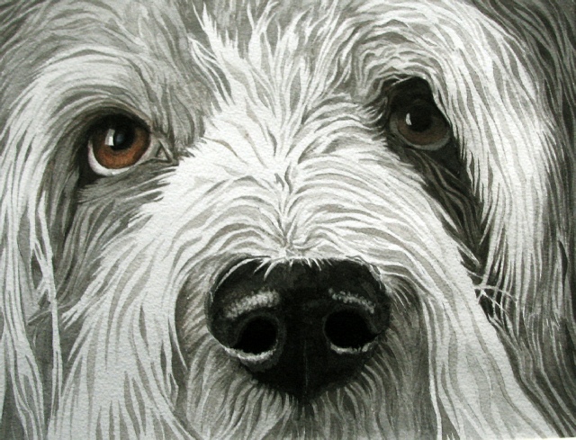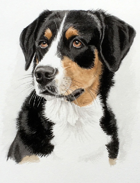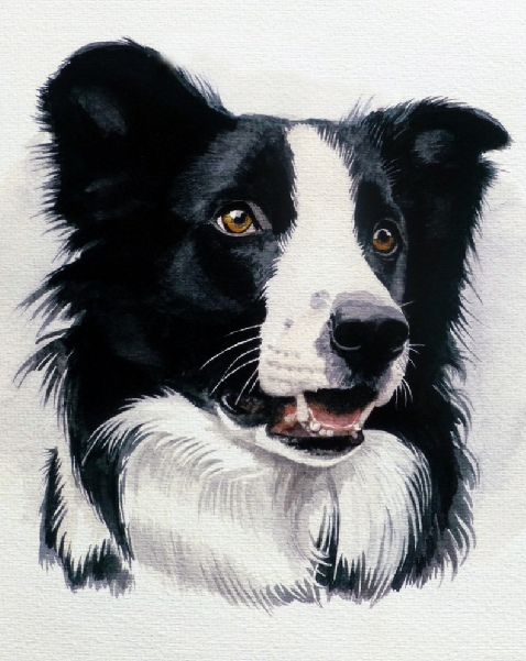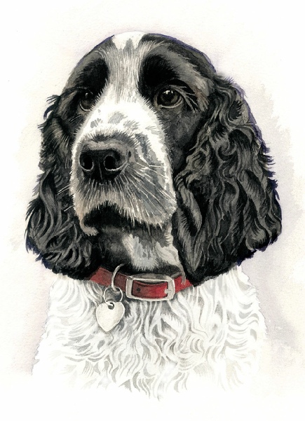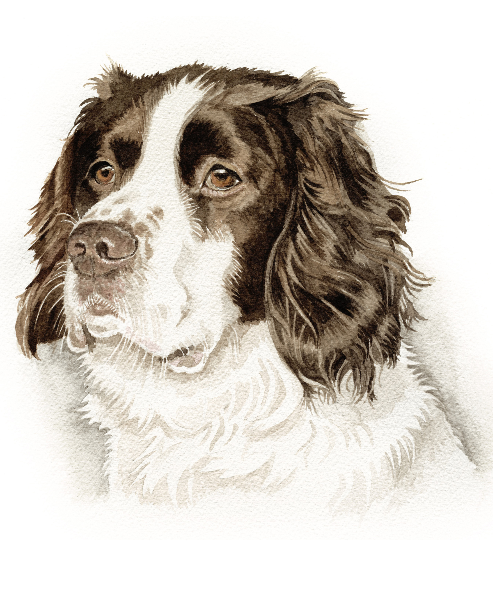 ‘Buster’, a Springer Spaniel - army explosive detection dog Watercolour on textured archive paper