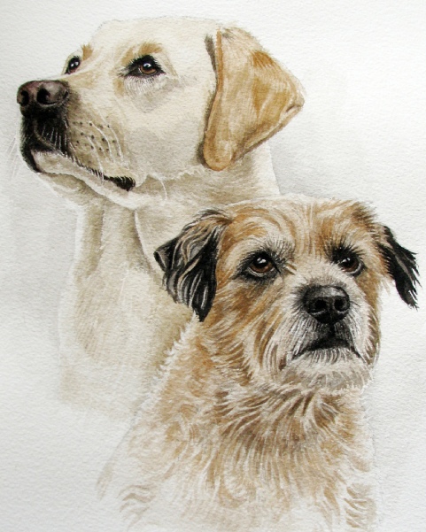 ‘Bella & Monte’, a beige Labrador & Border Terrier