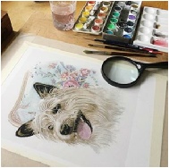 is prepared to travel in order to achieve that. He can paint from your existing photographs but will advise you whether their quality meets his artistic needs. Another option is that you bring your pet to him in West Sussex for a photographic session.